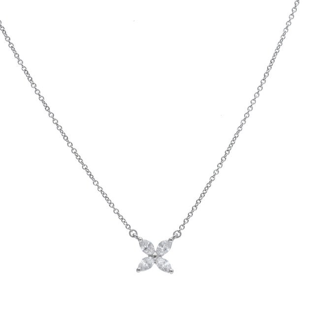 USED品。プラチナ製。小さなマーキースのダイヤモンドでお花を造る、ロマンティックなネックレス。 さり気なく身につけていられる大きさです。