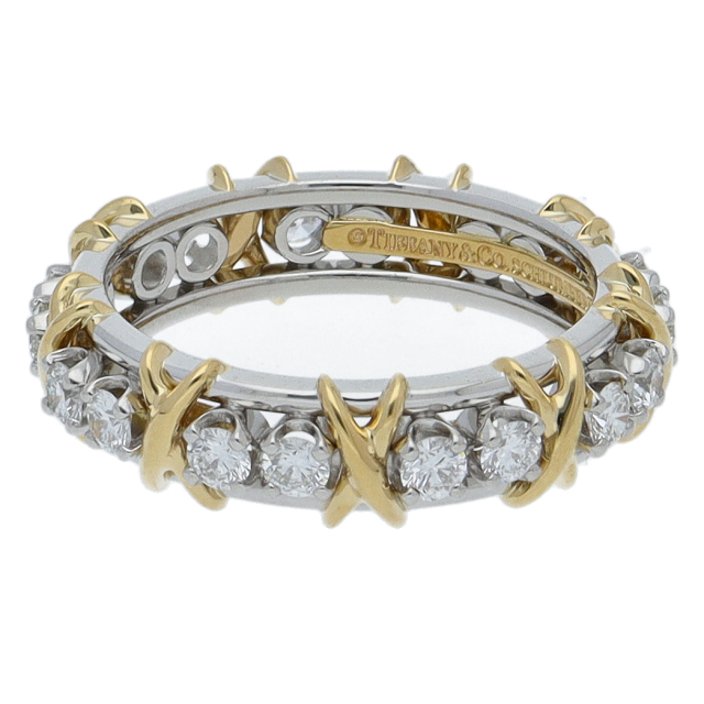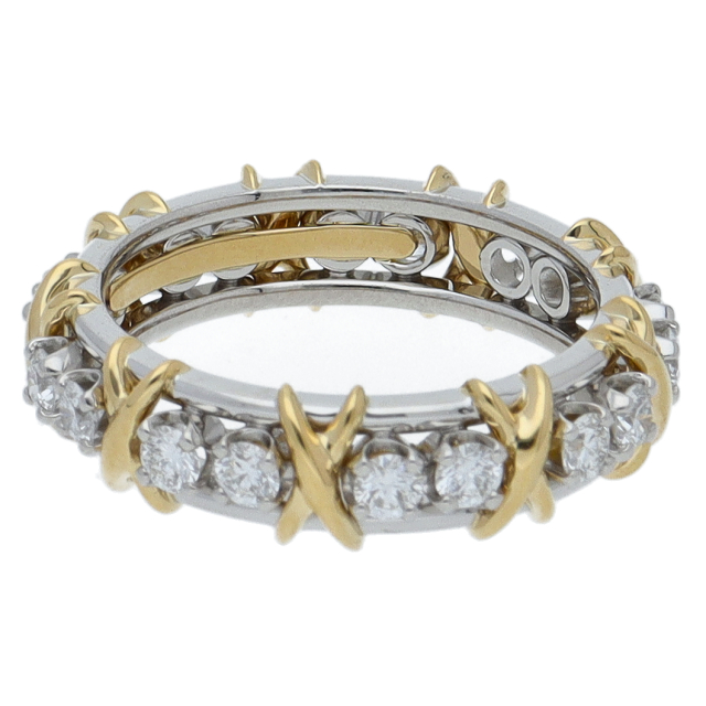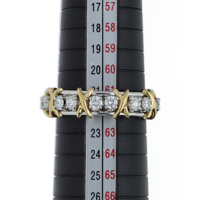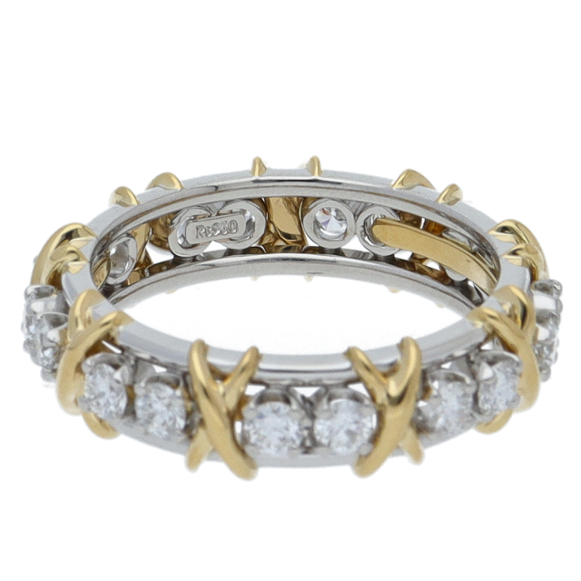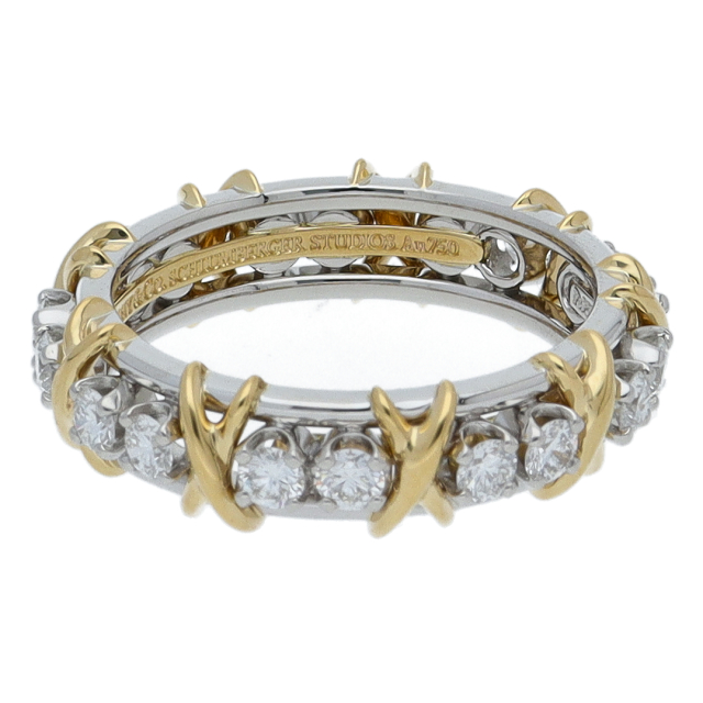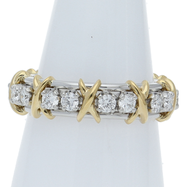 USED品。イエローゴールド/プラチナ製。愛のシンボル”X”の文字をジーンシュランバーゼーがデザインした存在感抜群のリングです。