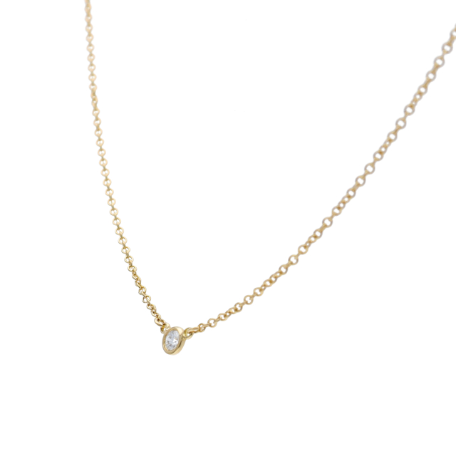 USED品。イエローゴールド製。デザイナーエルサ・ペレッティが「世の中の女性が予算に応じてダイヤの大きさや数を選べるように。(ヤード単位で)」という意味が込められてるティファニー人気のバイザヤードコレクションです。