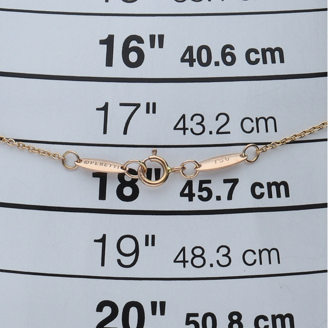 USED品。イエローゴールド製。デザイナーエルサ・ペレッティが「世の中の女性が予算に応じてダイヤの大きさや数を選べるように。(ヤード単位で)」という意味が込められてるティファニー人気のバイザヤードコレクションです。