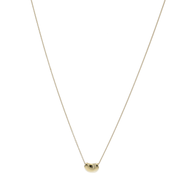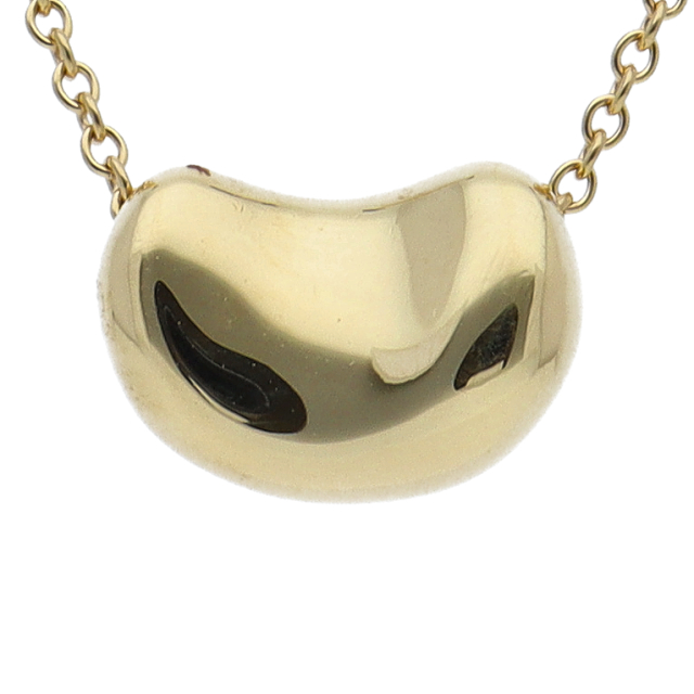 USED品。イエローゴールド製。丸みを帯びたティファニーのビーンズネックレス。大粒のデザインで、輝きの良い一品です。