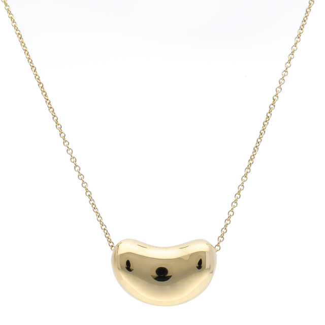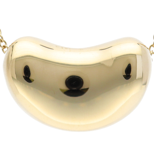 USED品。イエローゴールド製。丸みを帯びたティファニーのビーンズネックレス。大粒のデザインで、輝きの良い一品です。