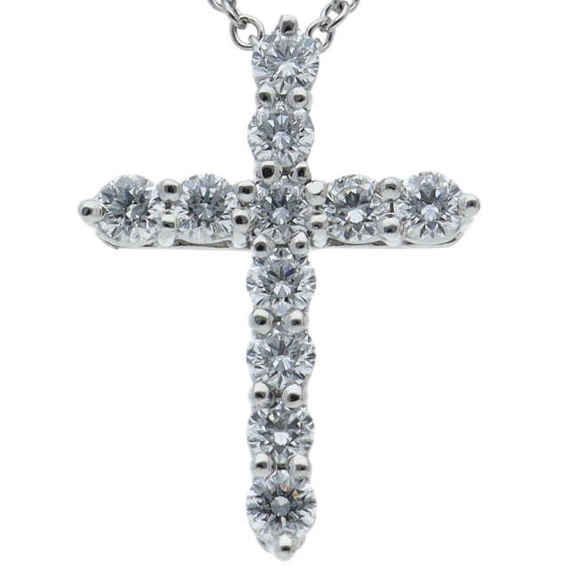 USED品。プラチナ製。小ぶりなサイズが可愛らしいクロスネックレス。デイリーユースからフォーマルまで活躍いたします。