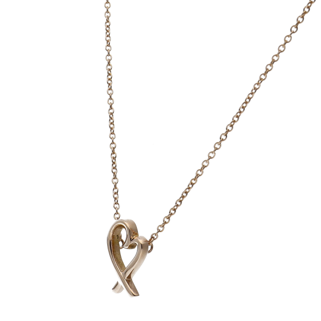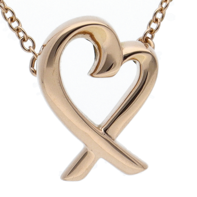 USED品。ピンクゴールド製。流れるようなフォルムが美しい、パロマ・ピカソデザインによるラビングハートネックレスです。