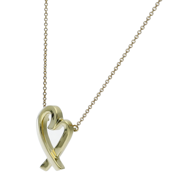 USED品。イエローゴールド製。流れるようなフォルムが美しい、パロマ・ピカソデザインによるラビングハートネックレスです。