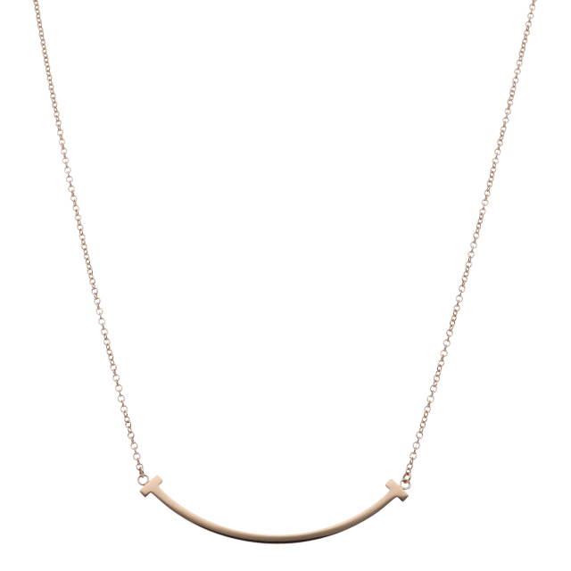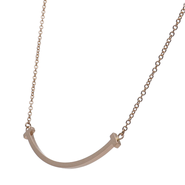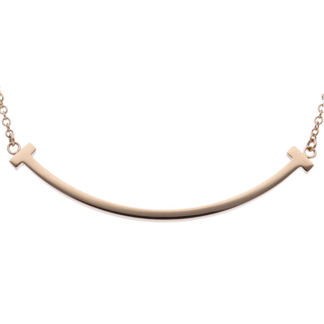 USED品。ピンクゴールド製。人気のTスマイルモチーフを控えめなサイズでデザインした上品なアイテムです。シンプルながらもコーディネートに気品を添えてくれる一品です。