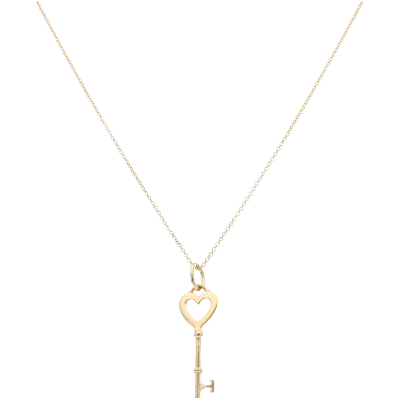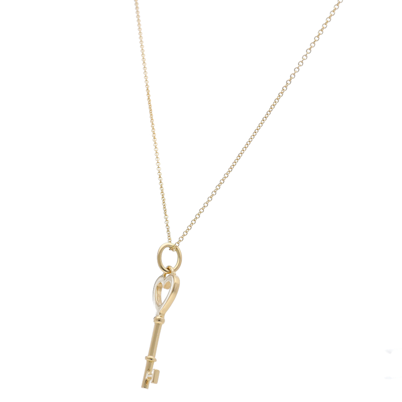 USED品。イエローゴールド製。ハートと鍵の形のヘッドとが可愛く女性らしい印象のネックレス。肌馴染みの良いイエローゴールドですので付ける人、ファッションを選びません。