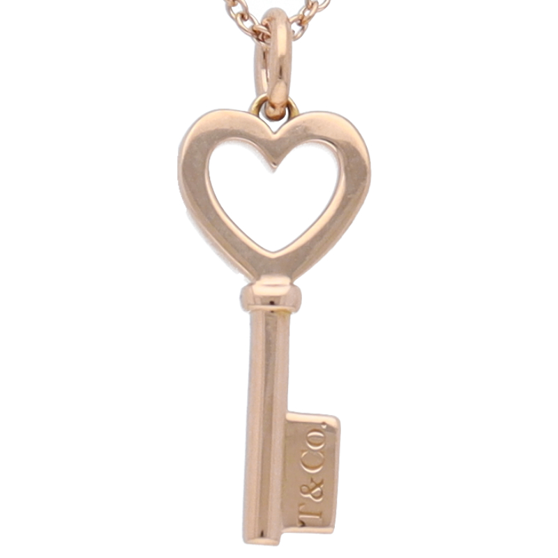 USED品。ピンクゴールド製。ハートとキーをモチーフにした人気のペンダントネックレスです。