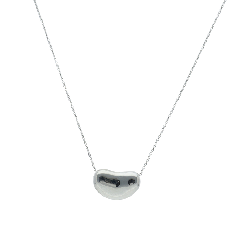 USED品。スターリングシルバー製。丸みを帯びたティファニーのビーンネックレス。小粒ながらも輝きの良い一品です。