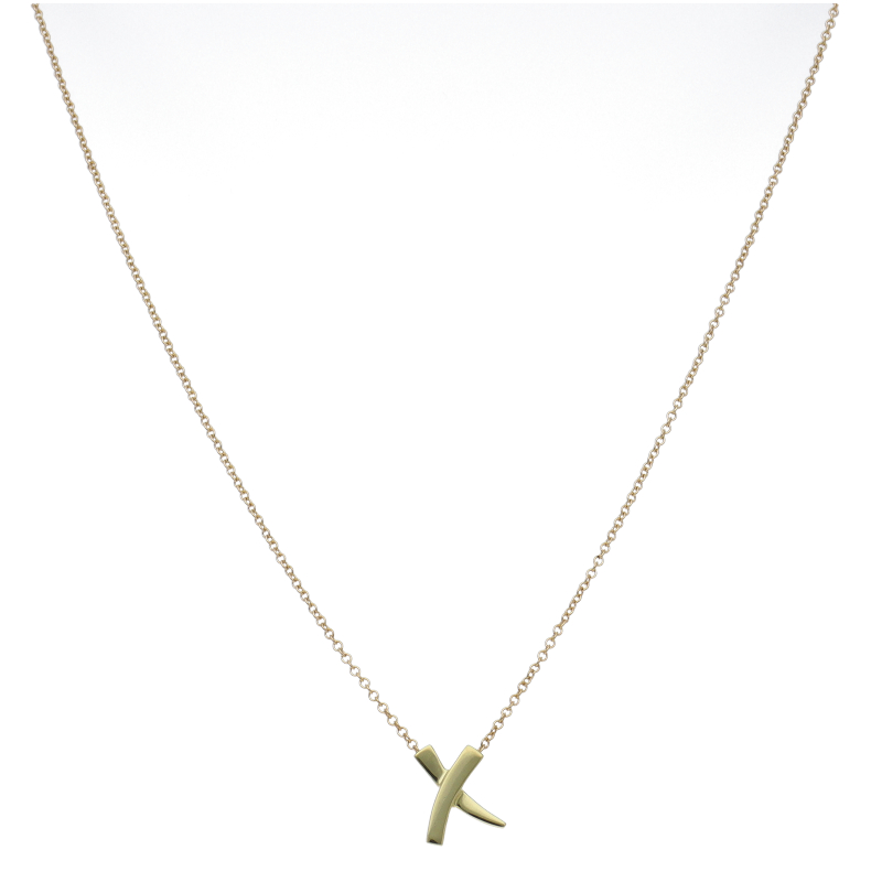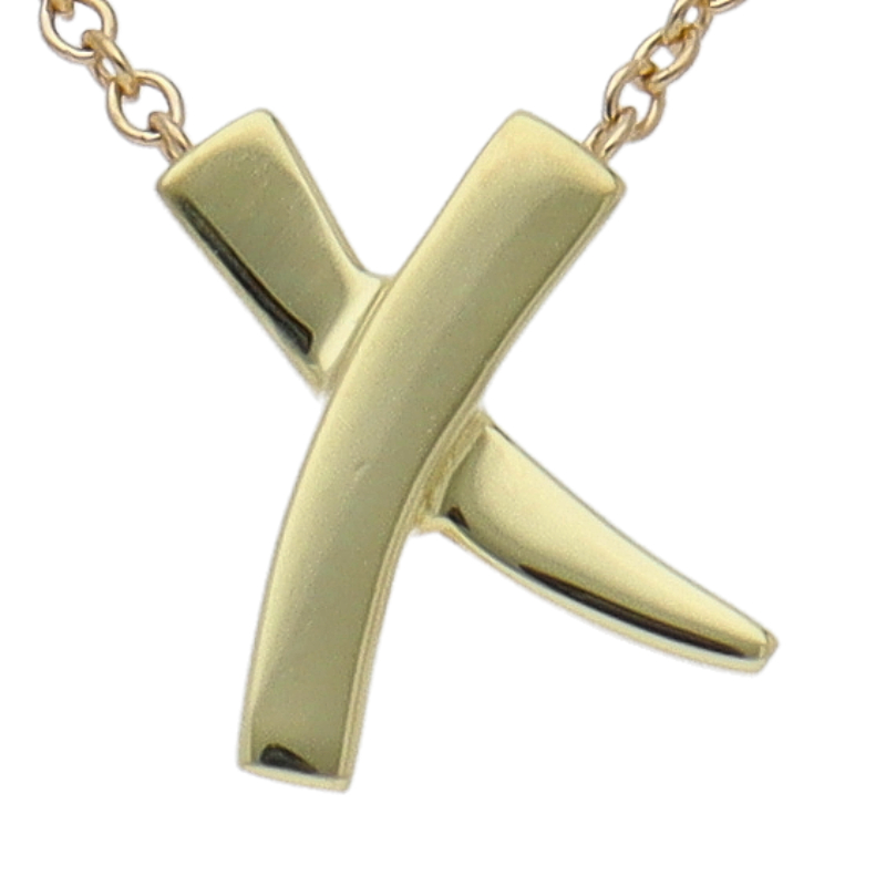 USED品。イエローゴールド製。パロマピカソの代表的な『ラブ&キス』シリーズのネックレスです。「キス」を表すXのアルファベットがモチーフになっております。