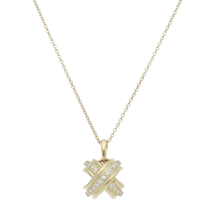 USED品。イエローゴールド製。小さいモチーフのシグネチャーデザインのネックレスです。