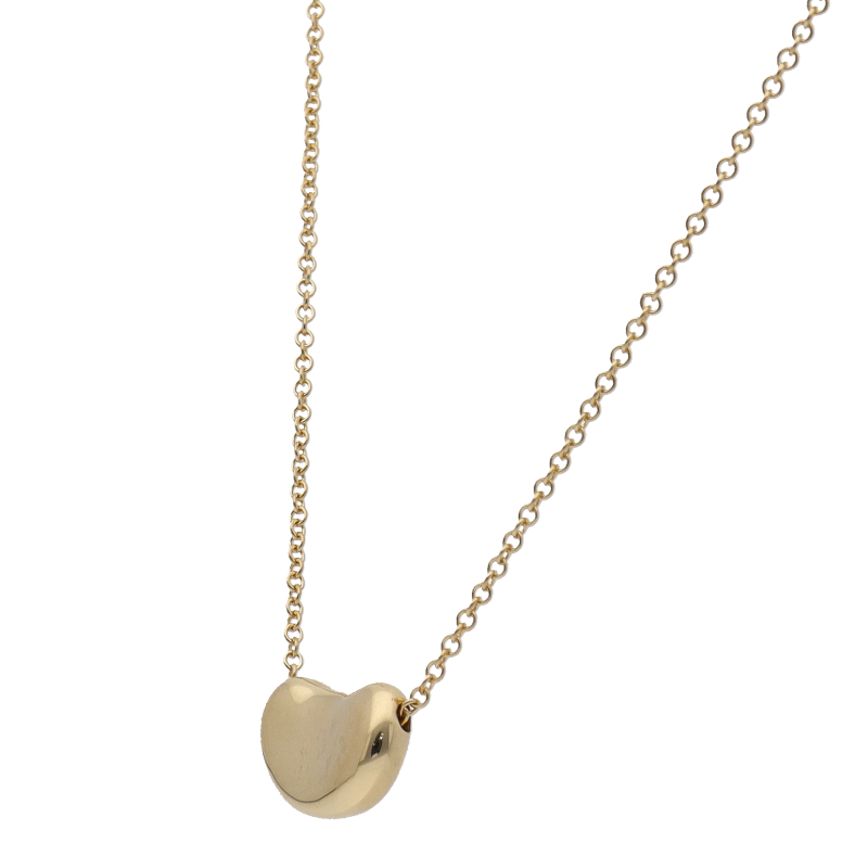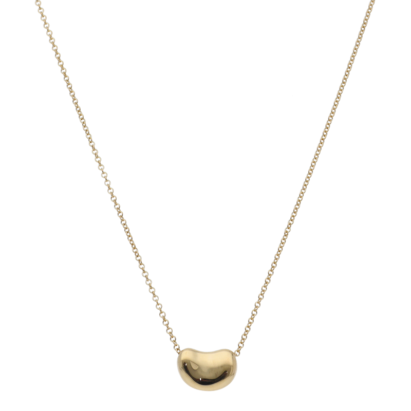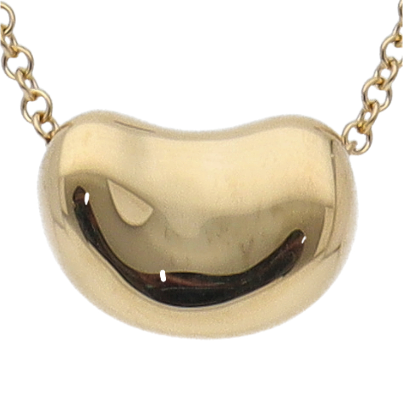 USED品。イエローゴールド製。丸みを帯びたティファニーのビーンズネックレス。小粒のデザインですが、輝きの良い一品です。