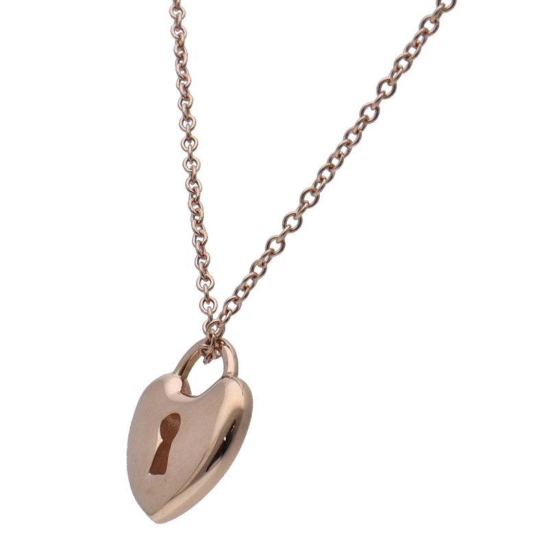 USED品。ピンクゴールド製。ハートとキーをモチーフにした人気のペンダントネックレスです。