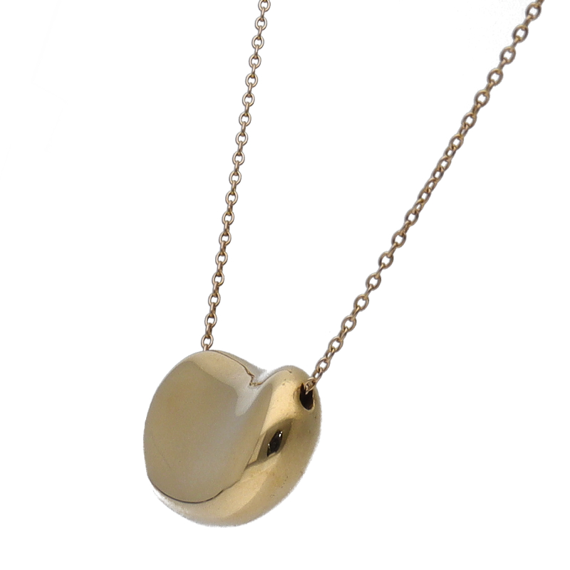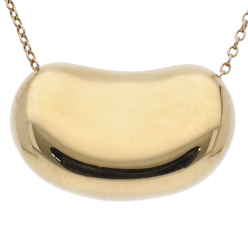 USED品。イエローゴールド製。丸みを帯びたティファニーのビーンズネックレス。大粒のデザインで、輝きの良い一品です。