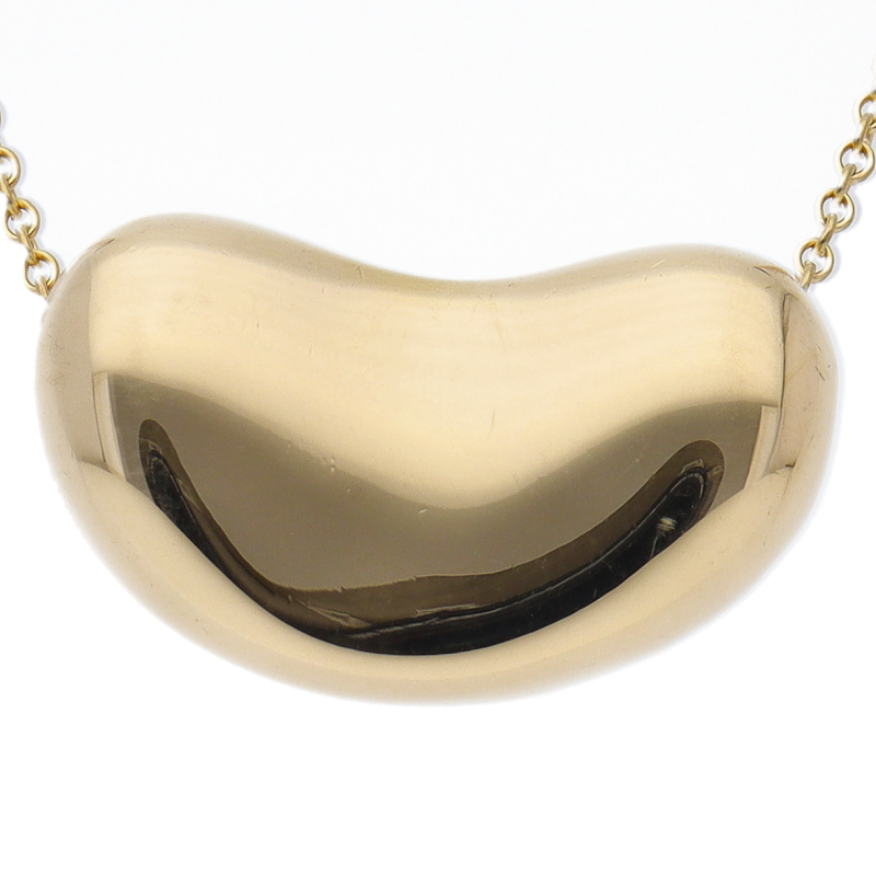 USED品。イエローゴールド製。丸みを帯びたティファニーのビーンズネックレス。大粒のデザインで、輝きの良い一品です。