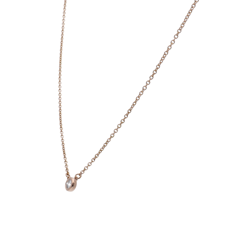 USED品。ピンクゴールド製。デザイナーエルサ・ペレッティが「世の中の女性が予算に応じてダイヤの大きさや数を選べるように。(ヤード単位で)」という意味が込められてるティファニー人気のバイザヤードコレクションです。