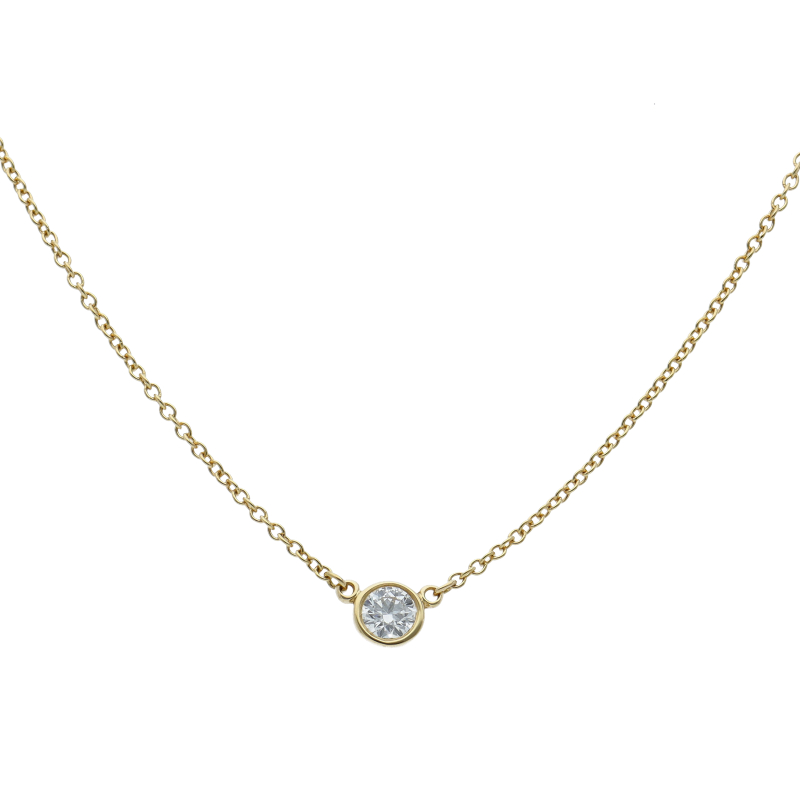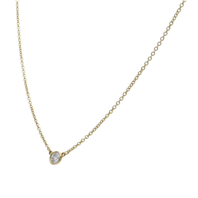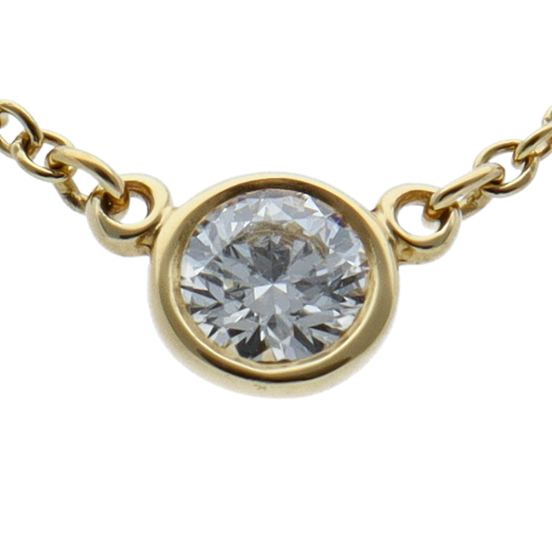 USED品。イエローゴールド製。デザイナーエルサ・ペレッティが「世の中の女性が予算に応じてダイヤの大きさや数を選べるように。(ヤード単位で)」という意味が込められてるティファニー人気のバイザヤードコレクションです。