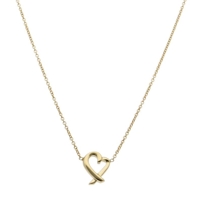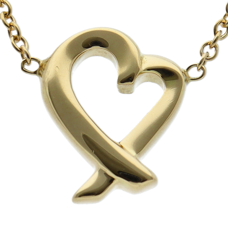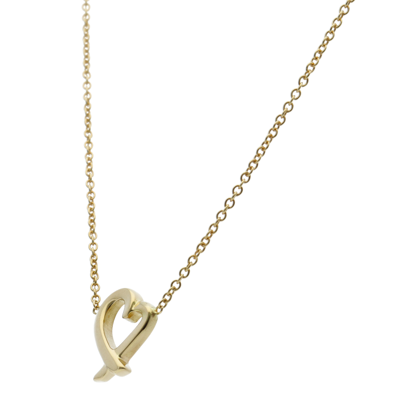 USED品。イエローゴールド製。流れるようなフォルムが美しい、パロマ・ピカソデザインによるラビングハートネックレスです。