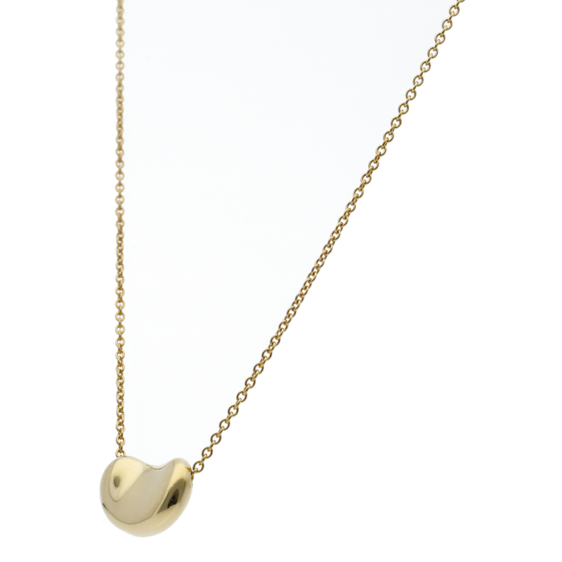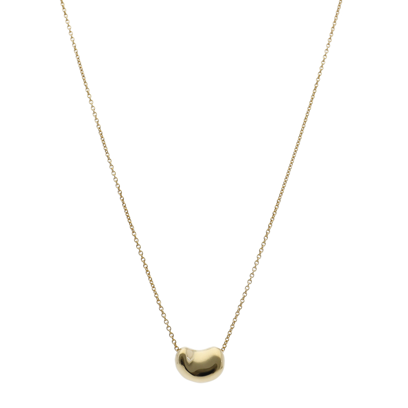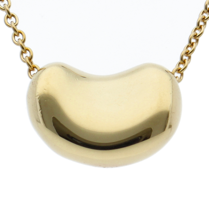 USED品。イエローゴールド製。丸みを帯びたティファニーのビーンズネックレス。大粒のデザインで、輝きの良い一品です。
