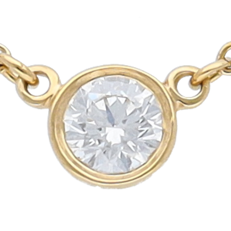 USED品。イエローゴールド製。デザイナーエルサ・ペレッティが「世の中の女性が予算に応じてダイヤの大きさや数を選べるように。(ヤード単位で)」という意味が込められてるティファニー人気のバイザヤードコレクションです。