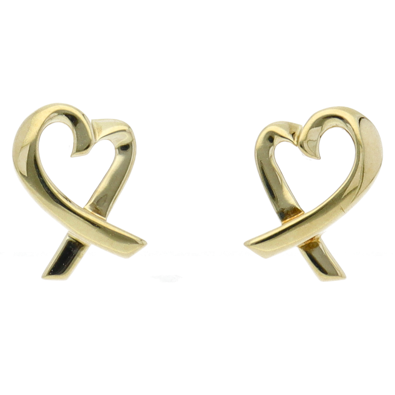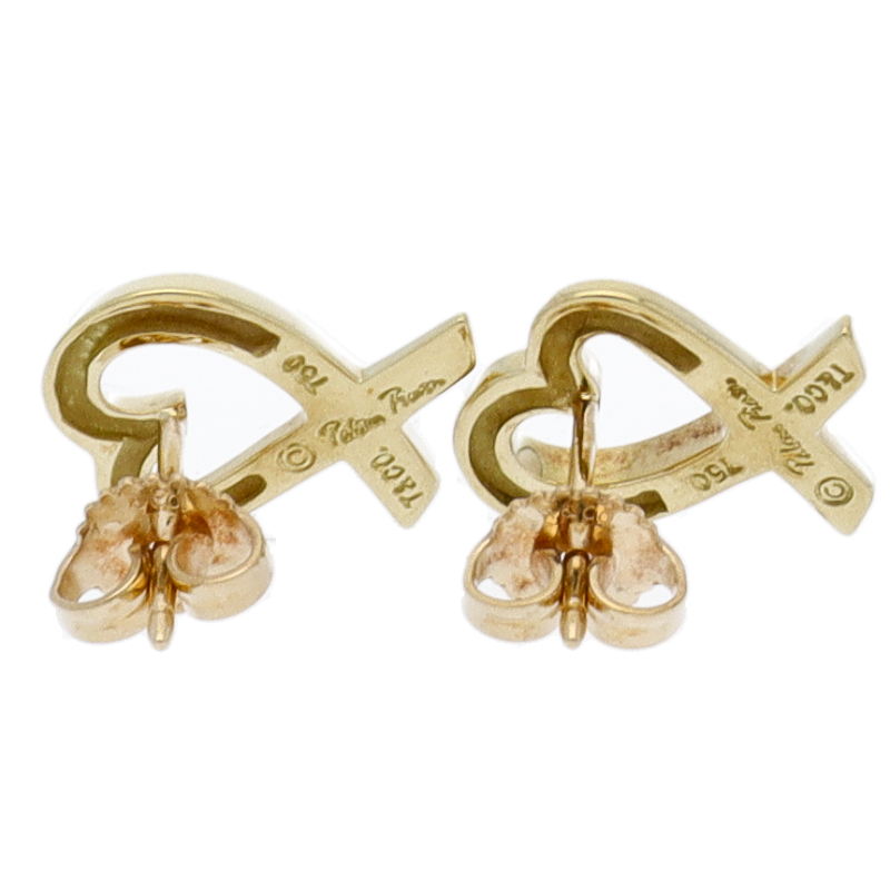 USED品。イエローゴールド製。流れるようなフォルムが美しい、パロマ・ピカソデザインによるラビングハートピアスです。
