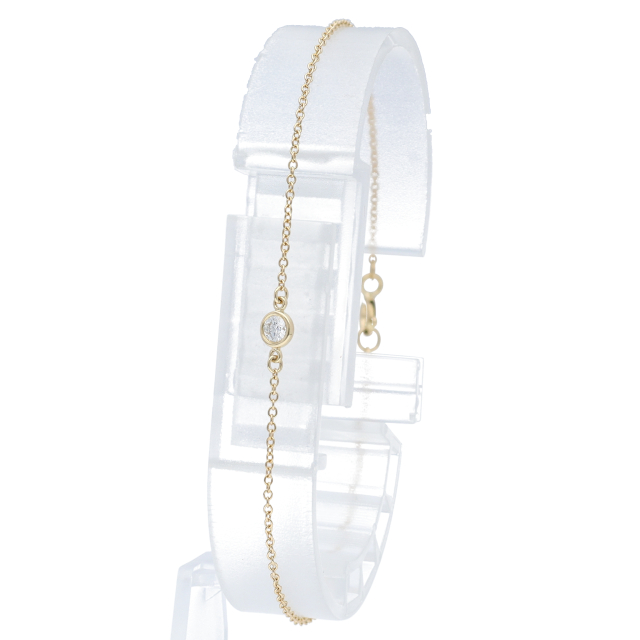 USED品。イエローゴールド製。ラウンドブリリアントカットのダイヤモンドをイエローゴールドにセッティングしたブレスレット。シンプルなデザインながらも存在感が際立ちます。