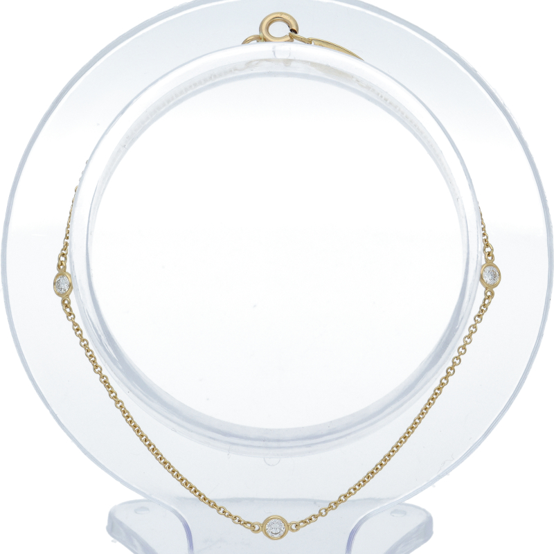 USED品。イエローゴールド製。デザイナーエルサ・ペレッティが「世の中の女性が予算に応じてダイヤの大きさや数を選べるように。(ヤード単位で)」という意味が込められてるティファニー人気のバイザヤードコレクションです。
