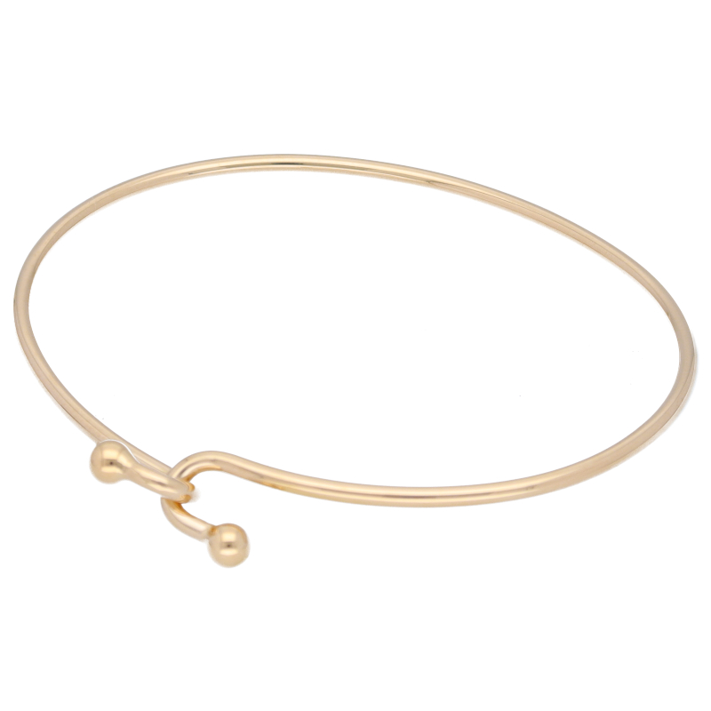 USED品。イエローゴールド製。シンプルな中にもデザイン性が感じられるバングル。無駄のない洗練されたラインが魅力です。カジュアル、フォーマル選ばずご使用いただけます。