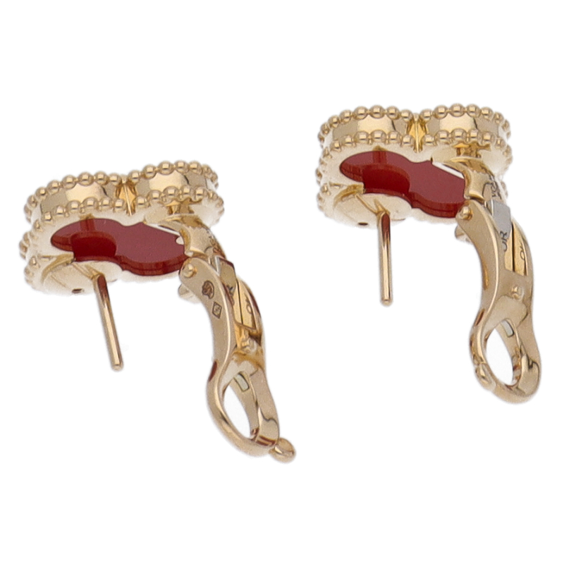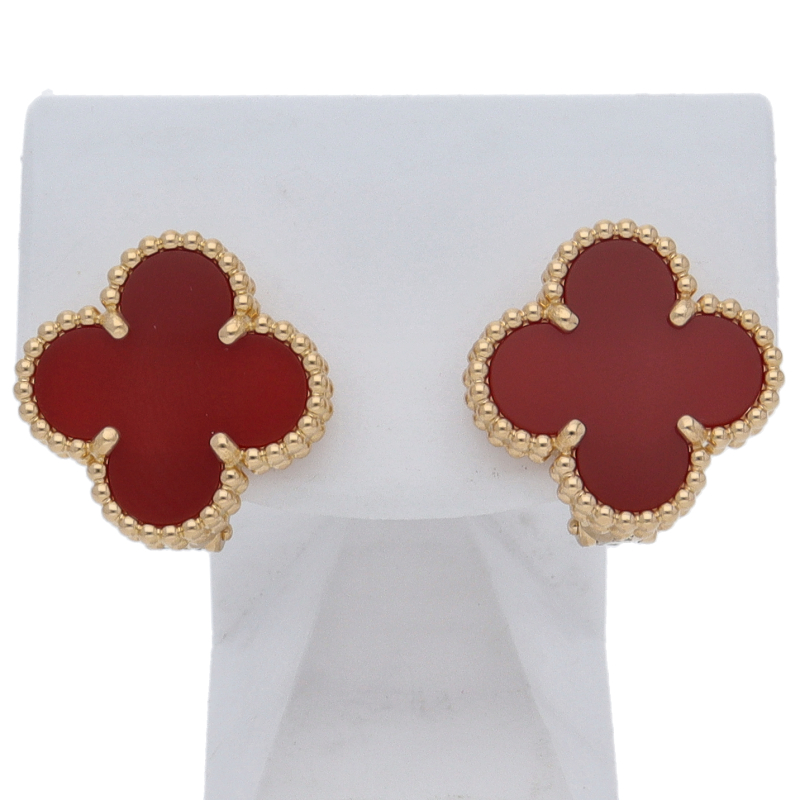 USED品。イエローゴールド製。長年愛され続けているヴァンクリーフのアルハンブラシリーズのピアスです。角度によって、美しい色合いが楽しめます。