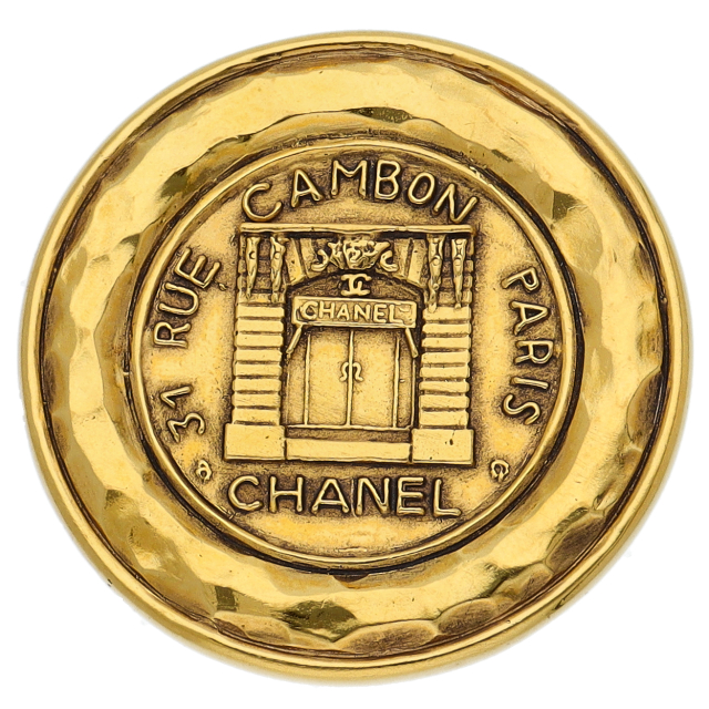 USED品。シャネルブティックをモチーフにしたデザイン。独特のヴィンテージ感がお洒落なブローチです。
