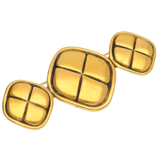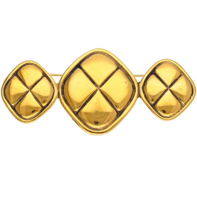 USED品。真鍮でできたシャネルのブローチです。立体感のあるデザインとココマークが特徴的です。