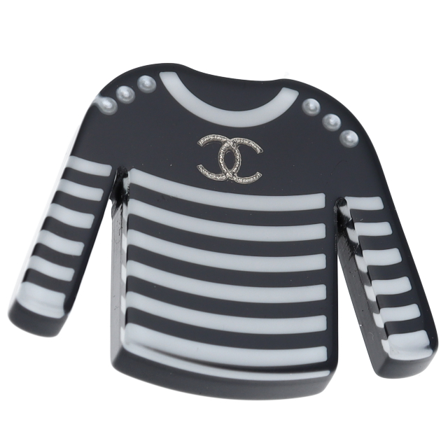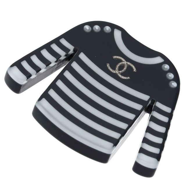 USED品。黒白ストライプの服をモチーフにした、お洒落なブローチです。