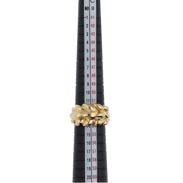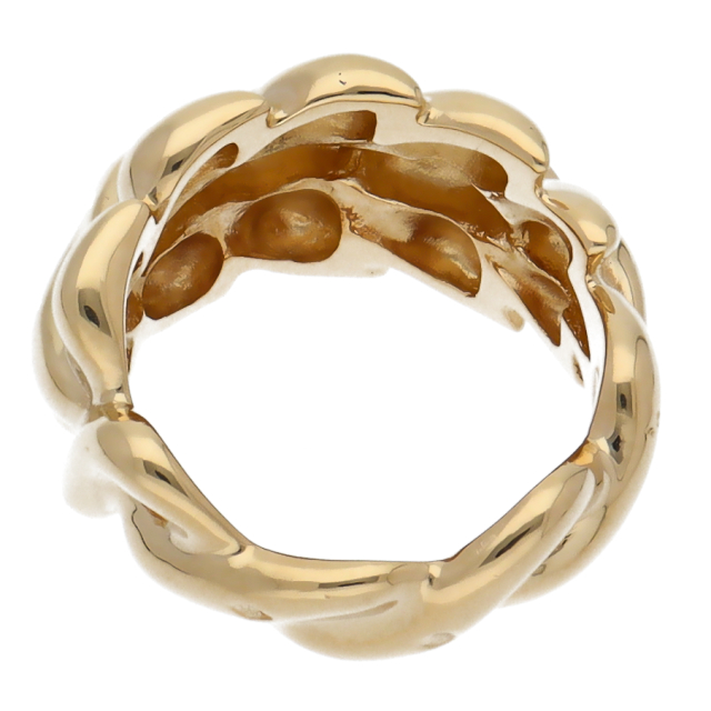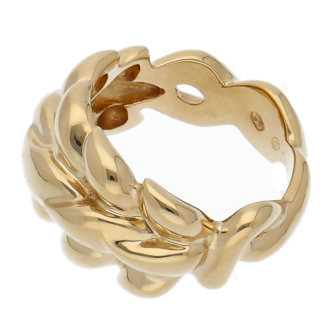 USED品。イエローゴールド製。リーフ(葉)をモチーフにした存在感のあるリングです。指元のアクセントにぴったりです。