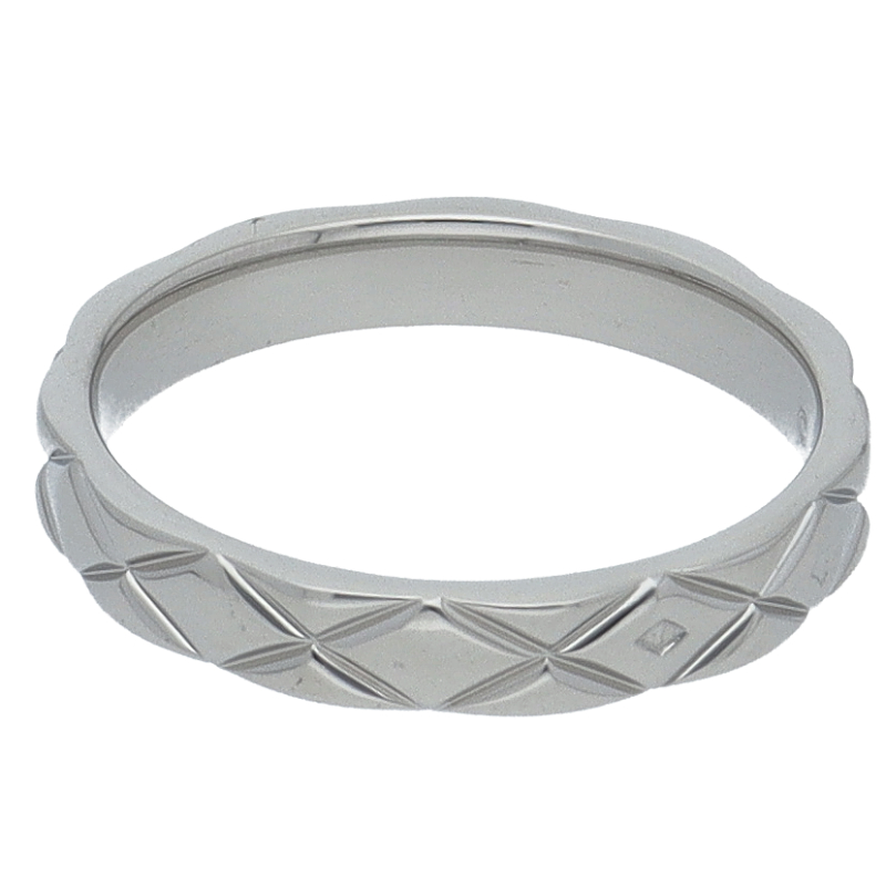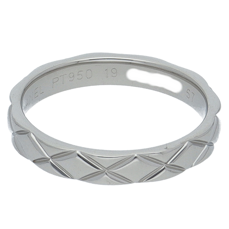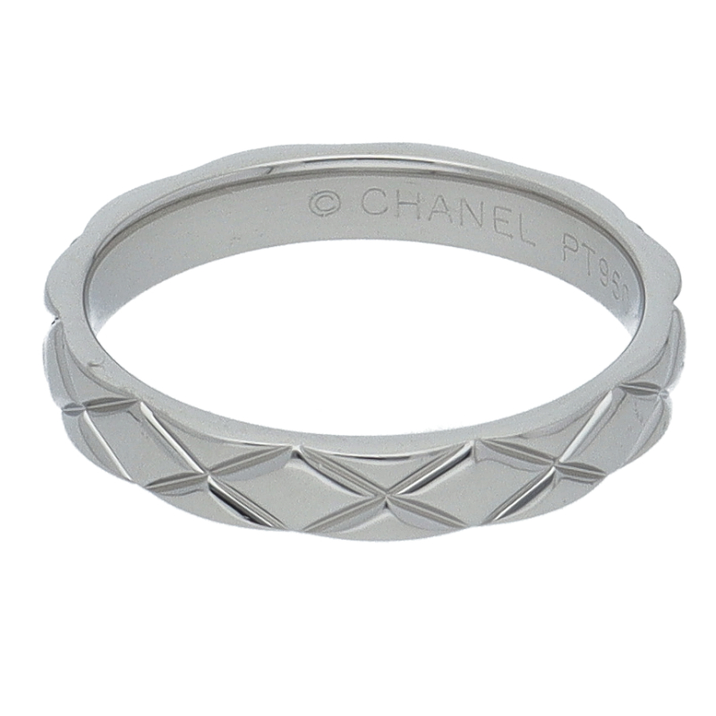 USED品。プラチナ製。1955年以来、シャネルのシンボルのひとつとなったキルティングモチーフを織りなす、ガドゥルーン装飾や立体的なフォルムと切り込み模様との融合が魅力的なココクラッシュシリーズ。シンプルながらもしっかりと「シャネル」の存在感をアピールできる人気アイテム。