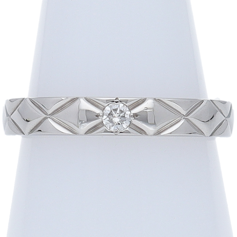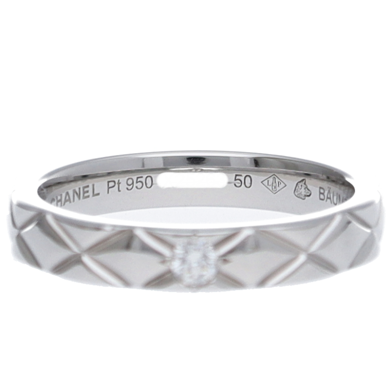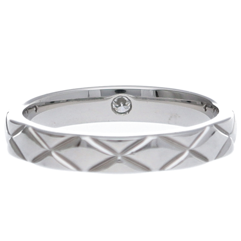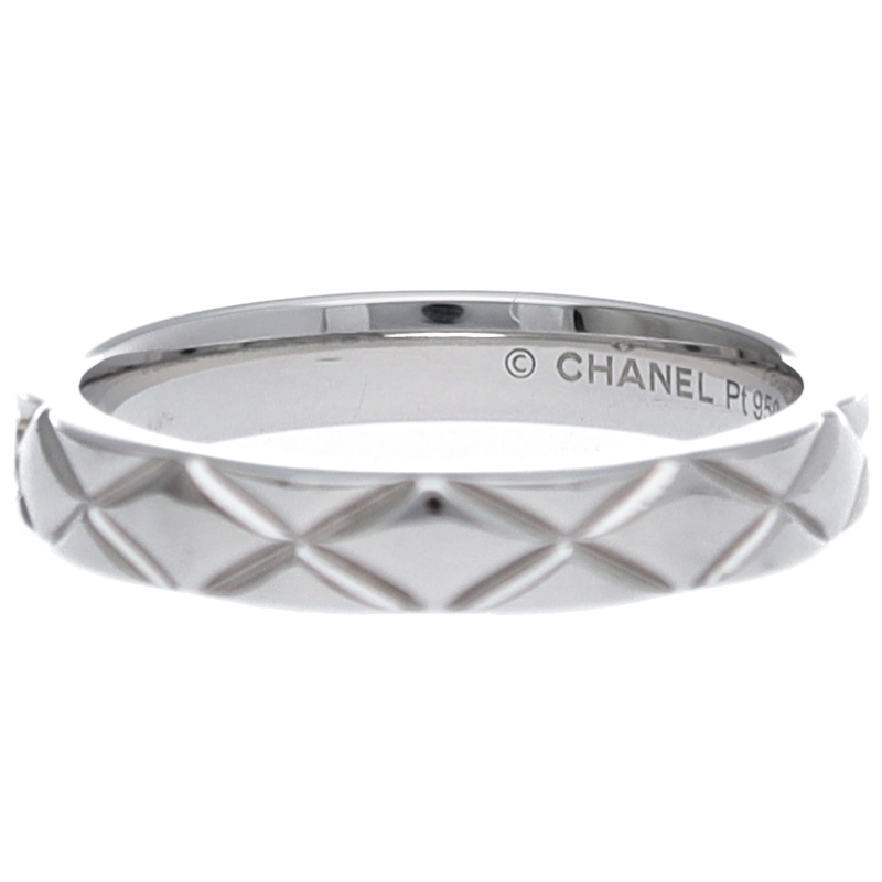 USED品。プラチナ製。1955年以来、シャネルのシンボルのひとつとなったキルティングモチーフを織りなす、ガドゥルーン装飾や立体的なフォルムと切り込み模様との融合が魅力的なココクラッシュシリーズ。シンプルながらもしっかりと「シャネル」の存在感をアピールできる人気アイテム。