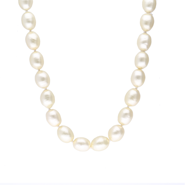 USED品。楕円型のフェイクパールが特徴的なネックレスです。シンプルなので普段のコーディネートはもちろん様々なファッションやシーンにお使いいただけるお品物です。