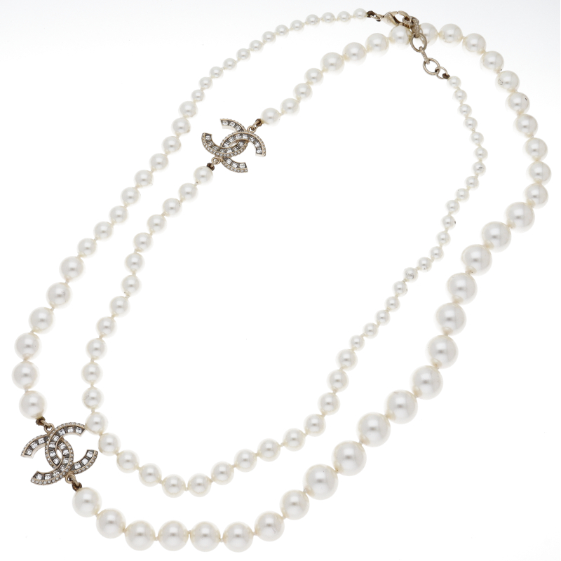 USED品。フェイクパールが特徴的なネックレスです。シンプルなので普段のコーディネートはもちろん様々なファッションやシーンにお使いいただけるお品物です。