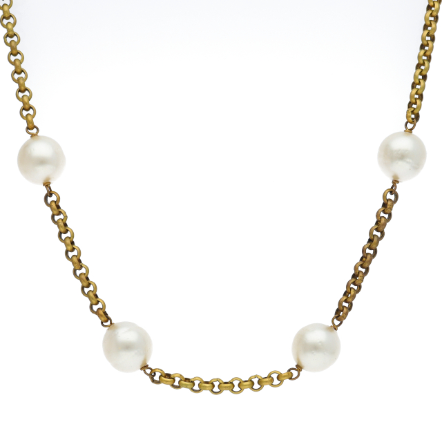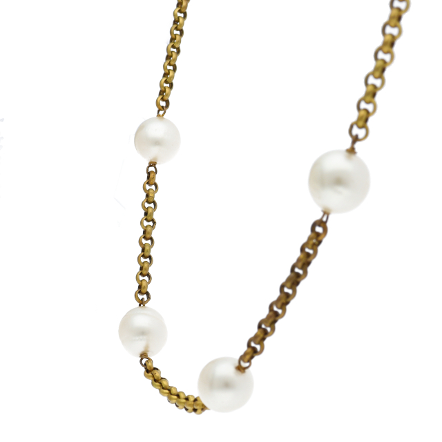 USED品。フェイクパールが特徴的なネックレスです。シンプルなので普段のコーディネートはもちろん様々なファッションやシーンにお使いいただけるお品物です。