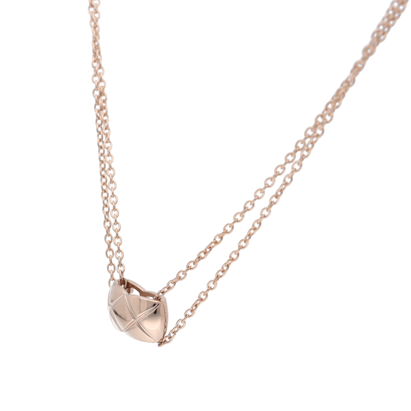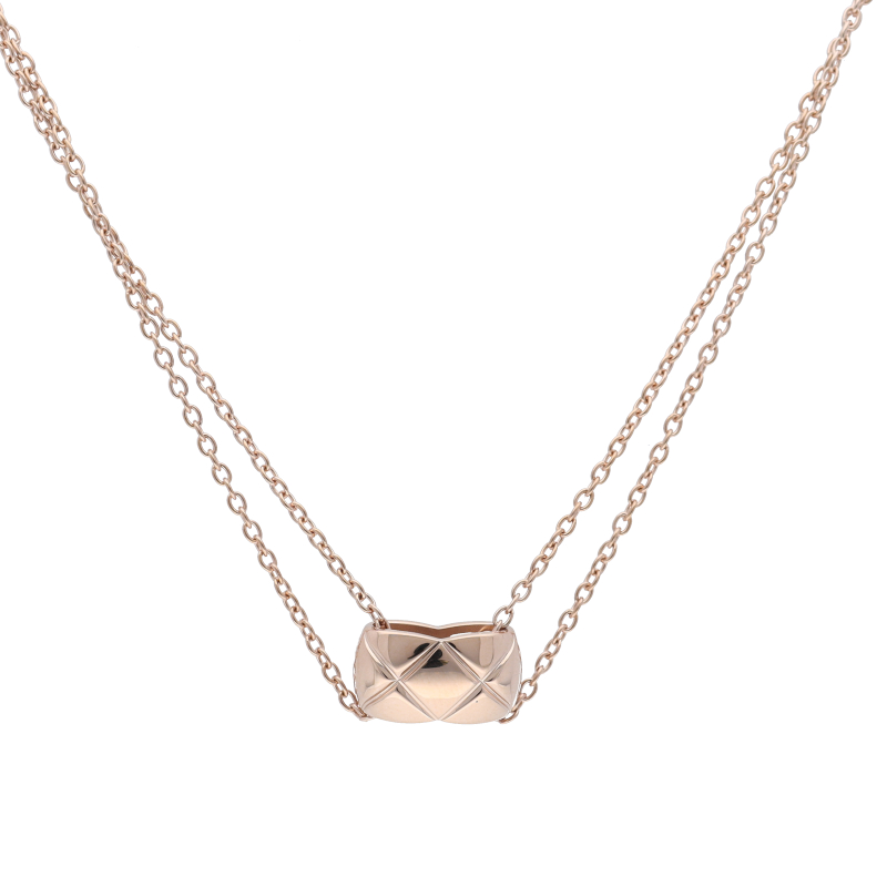 USED品。ピンクゴールド製。キルティングからインスピレーションを受けた、「ココ クラッシュ コレクション」。アイコニックかつ洗練されたデザインが首元を華やかに彩ります。シンプルなので、オン・オフ問わず永くお使い頂けます。