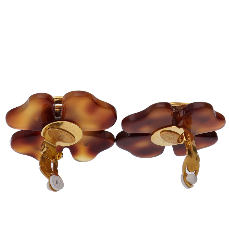 USED品。シャネルのココマークとべっ甲柄のクローバーが大人っぽく、とてもおしゃれなイヤリングです。
