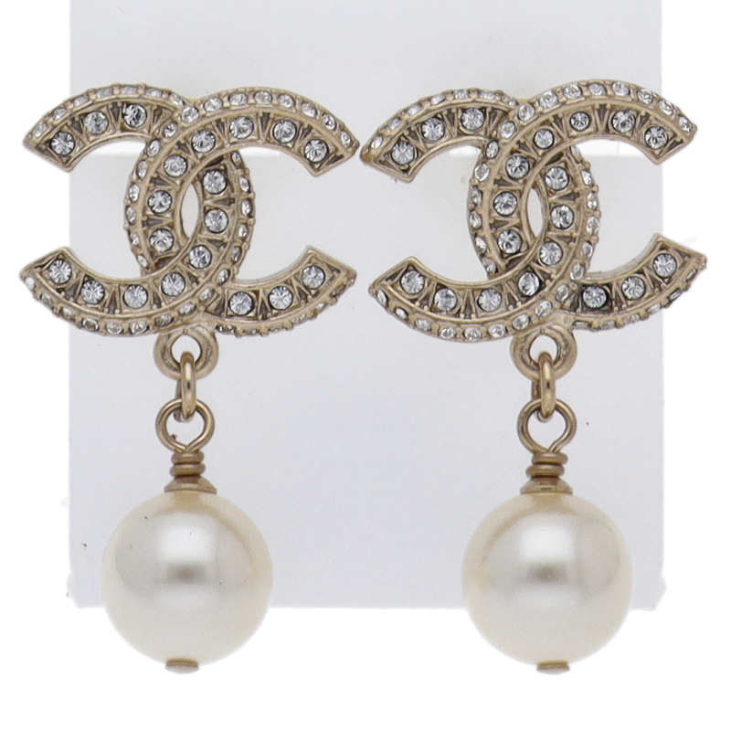 USED品。ラインストーンの輝きが印象的なココマークのピアスです。普段のコーディネートに添えるだけで、とても華やかになります。