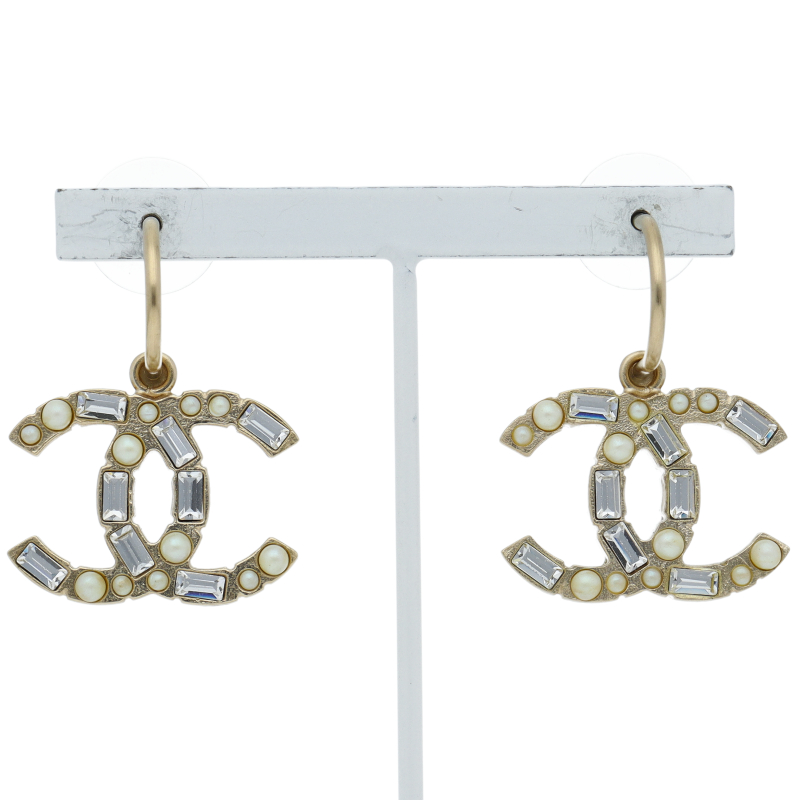 USED品。ラインストーンの輝きが印象的なココマークのピアスです。普段のコーディネートに添えるだけで、とても華やかになります。