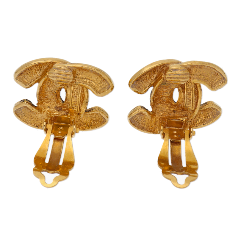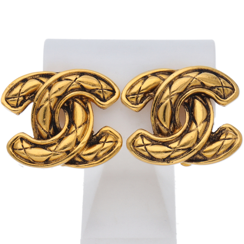 USED品。「CHANEL」のロゴが沢山入った、ブランドアピール抜群のイヤリングです。