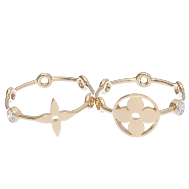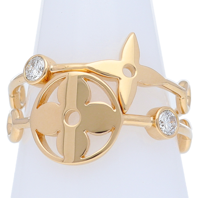 USED品。イエローゴールド製。モノグラムフラワーを模ったとってもキュートな「LVバーグモノグラムスキンリング。ダイヤモンドがさり気なく輝きます。デイリーからデート、パーティーまで様々なシーンで活躍してくれそうです。