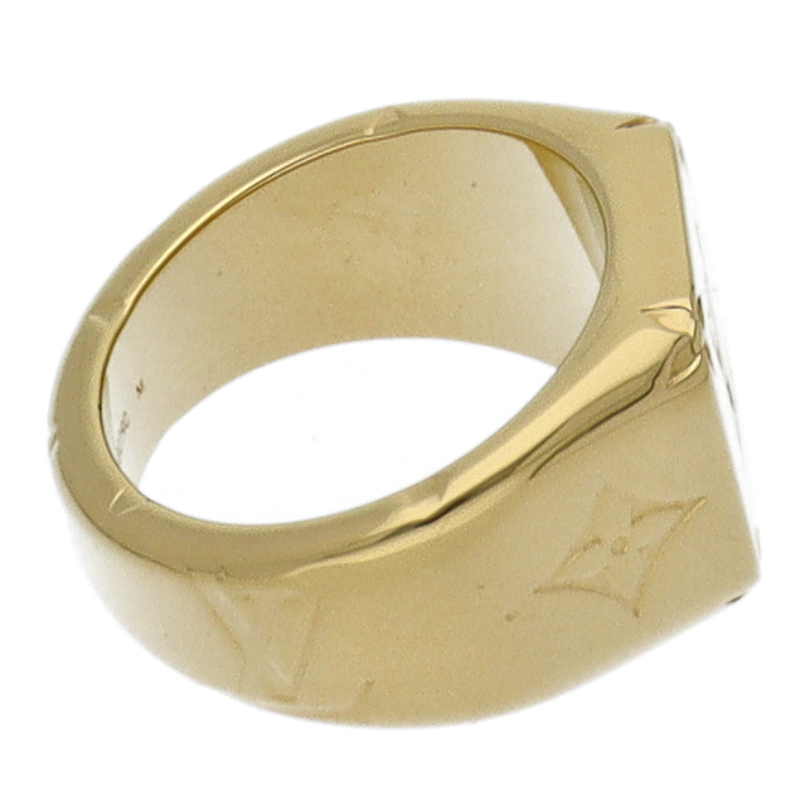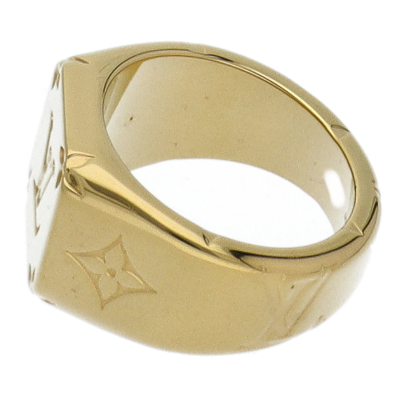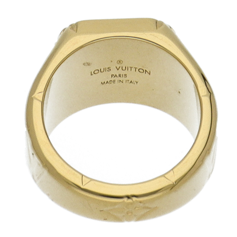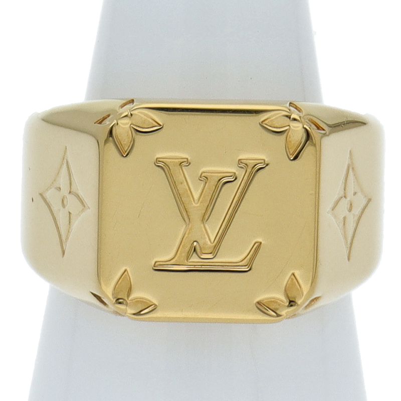USED品。定番のモノグラム・パターンのファッションジュエリーを、今シーズンに相応しく美しい輝きで再解釈した「シグネットリング モノグラム」。クリーンで大胆なラインを持つリングがクラシカルな印象を放ちます。シール部分にLV イニシャルをエンボス加工し、メゾンならではの個性を表現しました。
