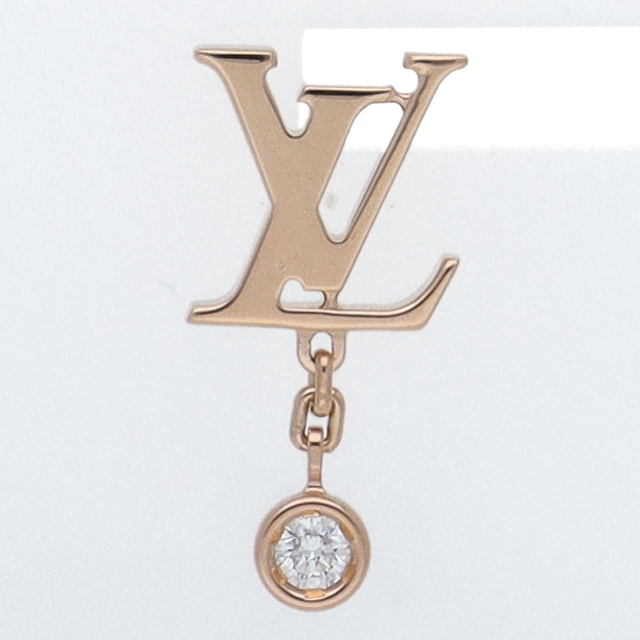 USED品。ピンクゴールド製。LVモチーフにワンポイントダイヤがゆらゆら揺れる人気のピアス。片耳用の商品です。