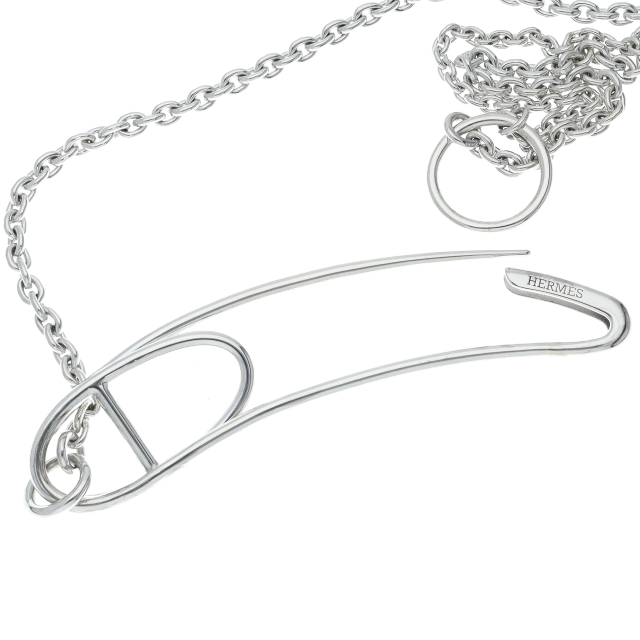 USED品。スターリングシルバー製。エルメスを代表するモチーフ「シェーヌダンクル」のロングネックレスが入荷いたしました。大振りのトップが印象的で、シルバーの爽やかなきらめきが首元を華やかに飾ってくれます。色々なファッションに、そして様々なシーンでお使い頂けるネックレスです。