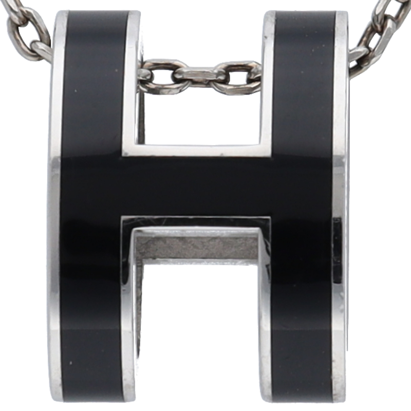 USED品。コロコロとしたHキューブが胸元で可愛げに存在感をアピールするネックレス。シルバー×ブラックで大人な雰囲気を感じさせます