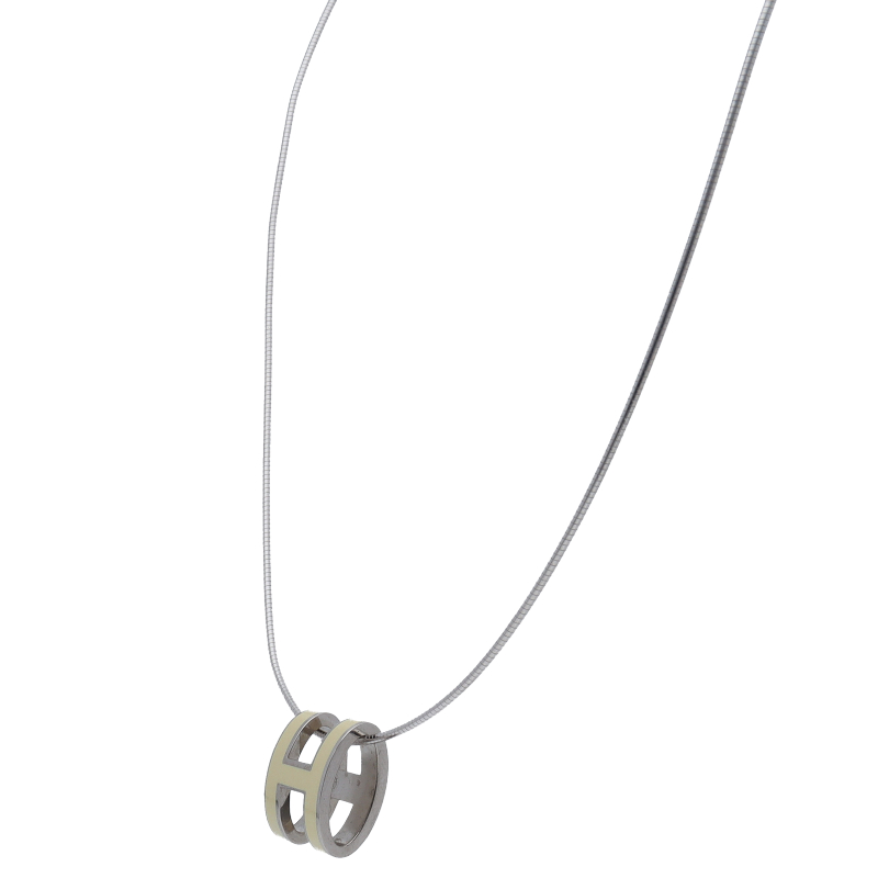 USED品。コロコロとしたHキューブが胸元で可愛げに存在感をアピールするネックレス。ホワイト×シルバーが大人な雰囲気を感じさせます