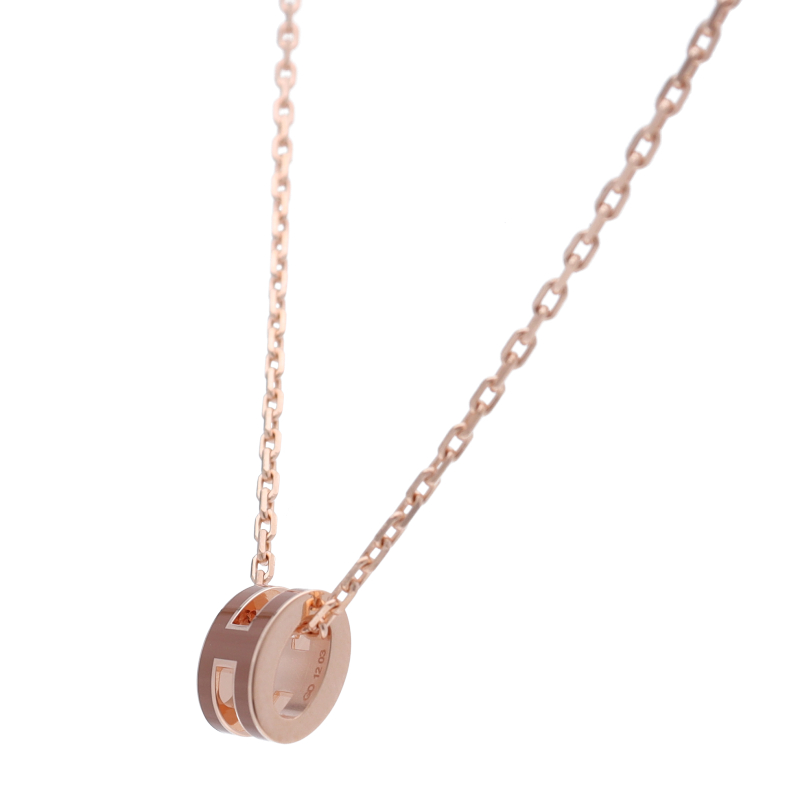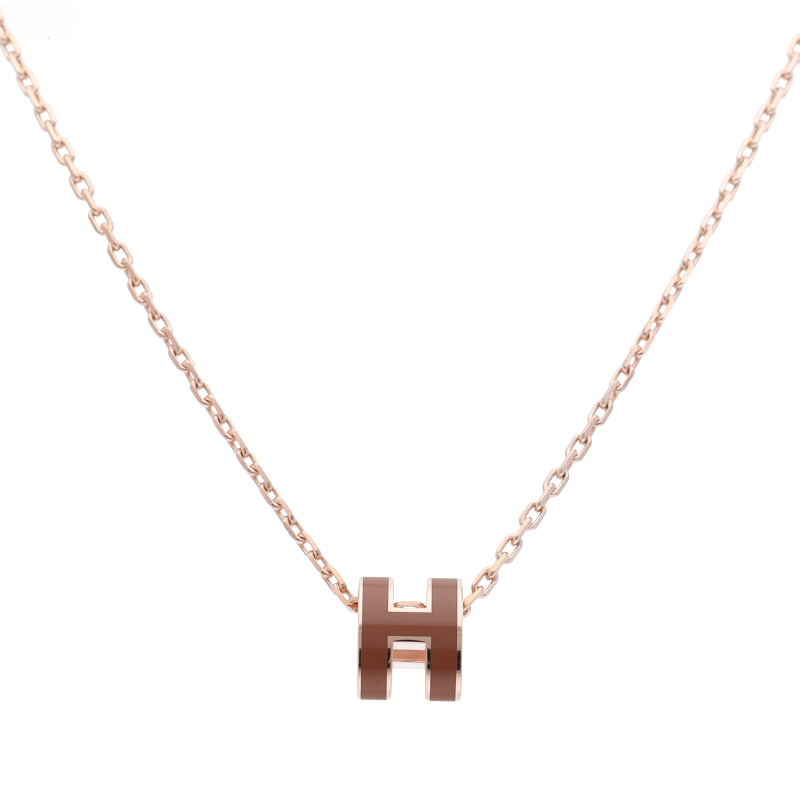 新品。エルメスの「H」を象徴したポップでおしゃれなネックレスです。デコルテ周辺のアクセントに最適。PGカラーに茶色(ニューゴールド)ロゴです。